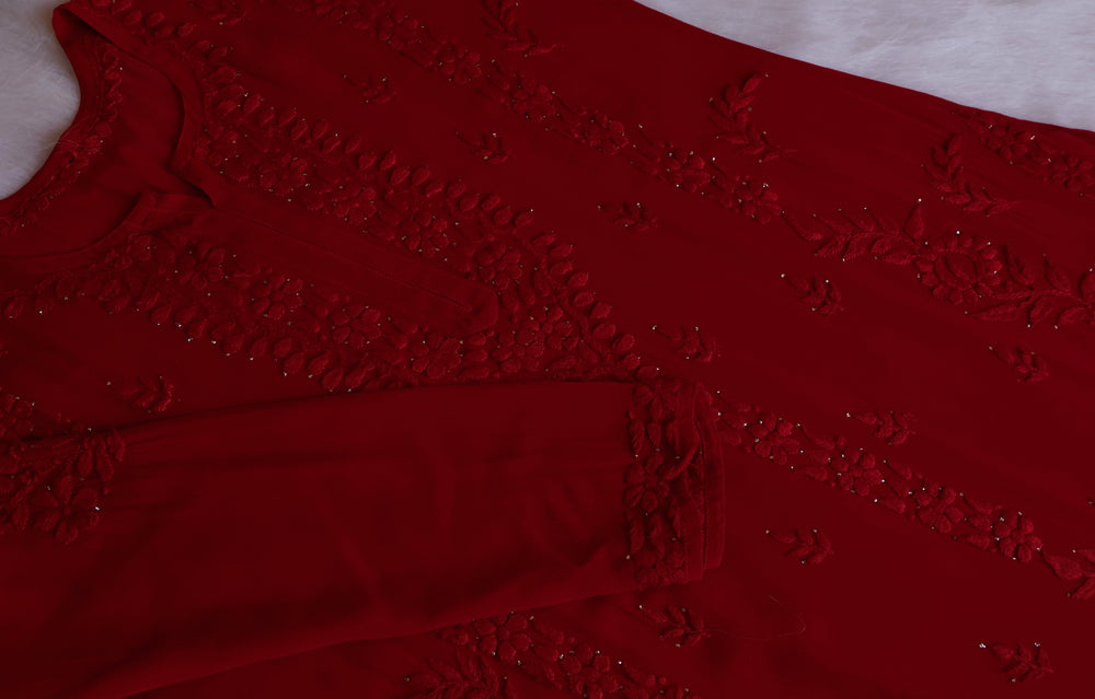 Zamda Red Viscose Georgette Kurta