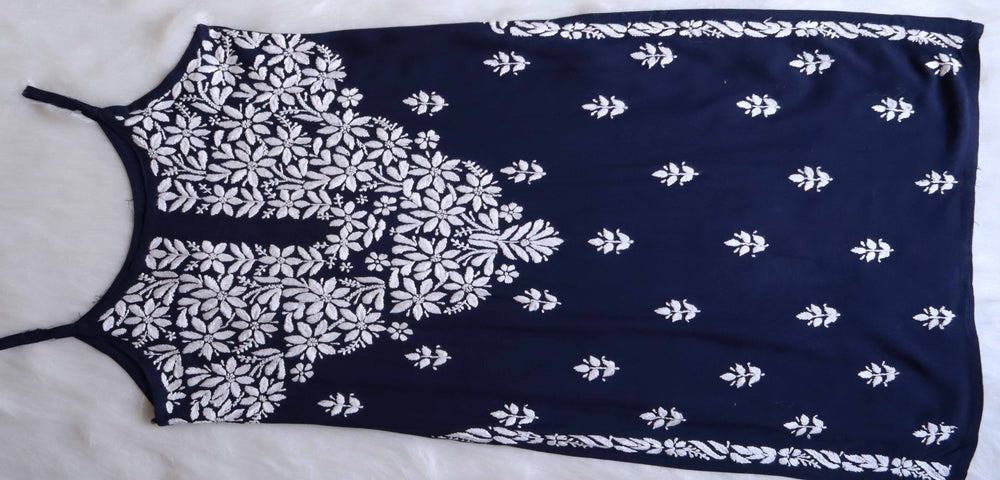 Navy Blue Long rayon kurta with White Chikankari hand work in Floral pattern paired with a matching palazzo to complete the look.