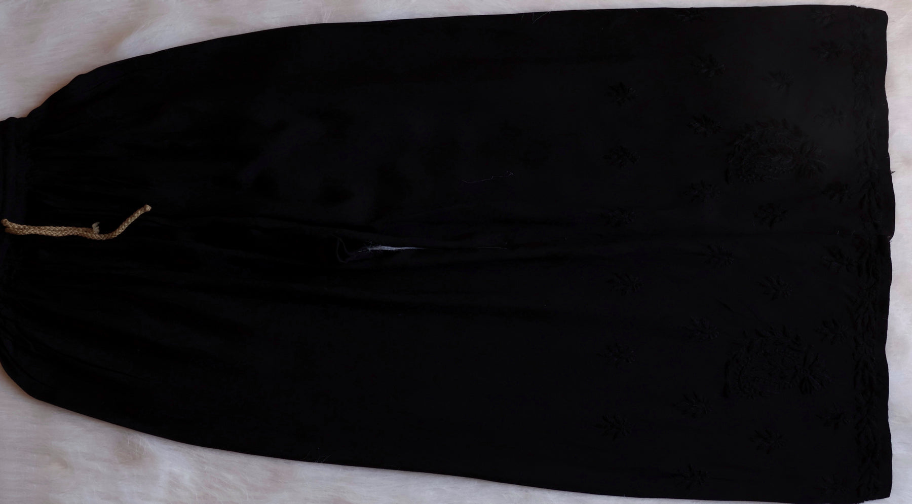 Black Long Rayon kurta with self colored chikankari in Floral & Jaal pattern paired with a matching pure chiffon dupatta and matching pants with pockets to complete the look.