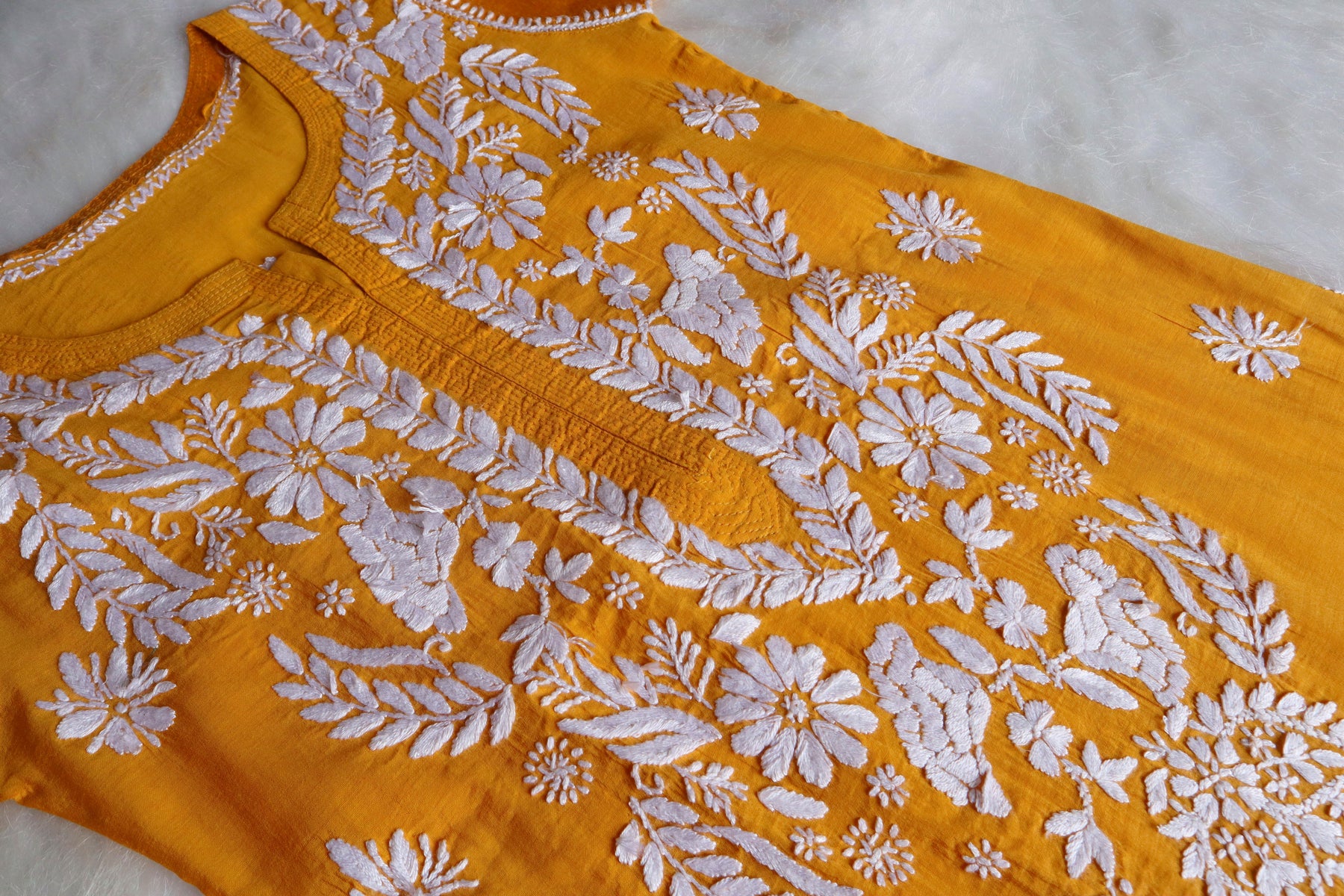 Mustard Chanderi  kurta with chikankari handwork in Paisley and Floral pattern. It's a really Serene kurta from our Pastel premium collection with beautiful details! It's perfect and is made for everyone.