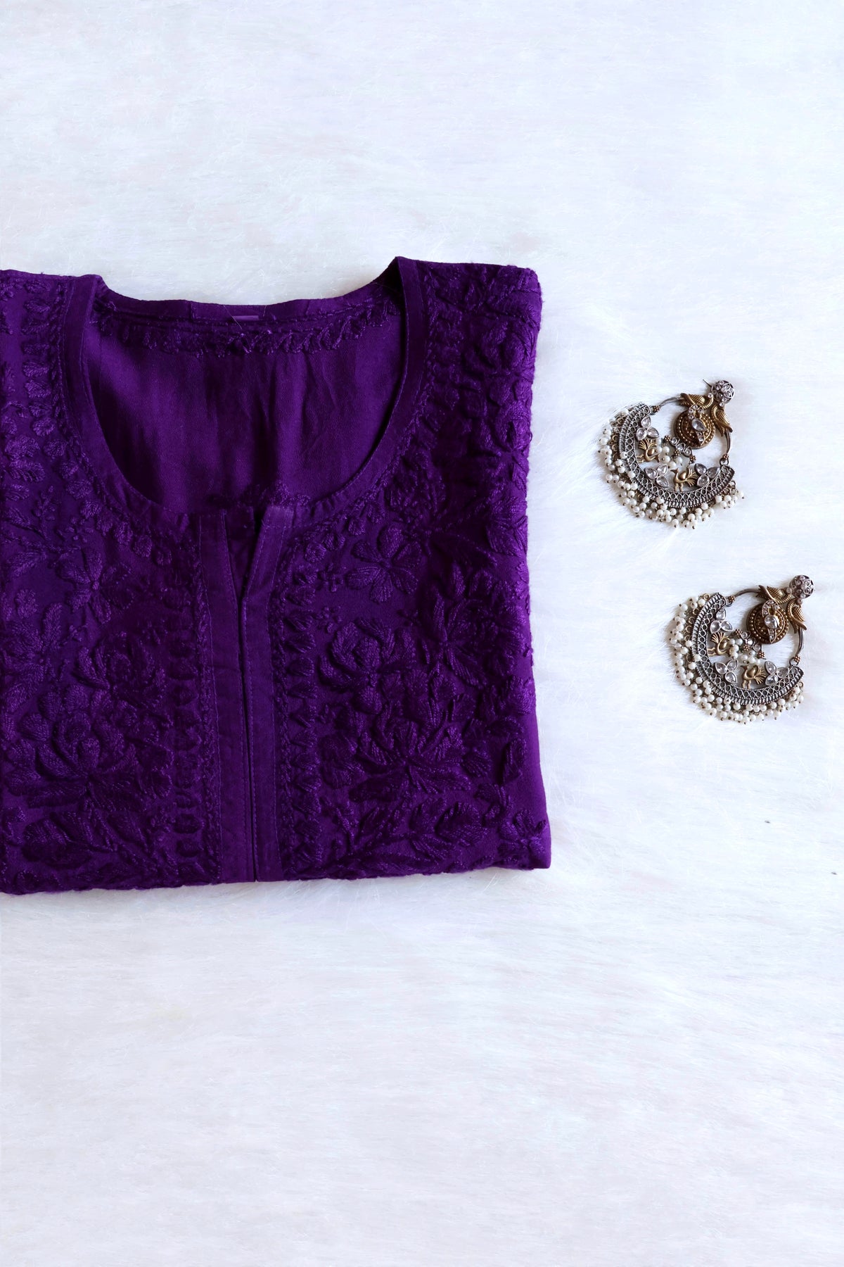 Purple Chanderi  kurta with chikankari handwork in Paisley and Floral pattern. It's a really Serene kurta from our Pastel premium collection with beautiful details! It's perfect and is made for everyone.
