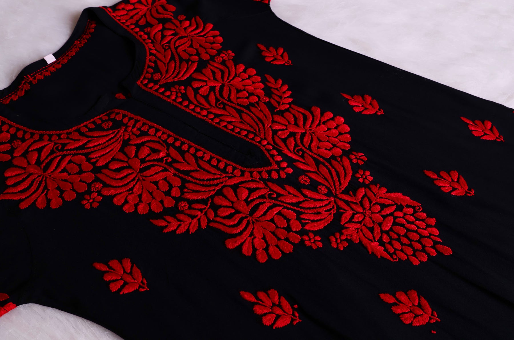 Black Long Rayon kurta with chikankari handwork in Paisley pattern with Intricate details. You need a Soft Rayon kurta in all the seasons. They're the most versatile piece of clothing you can own.