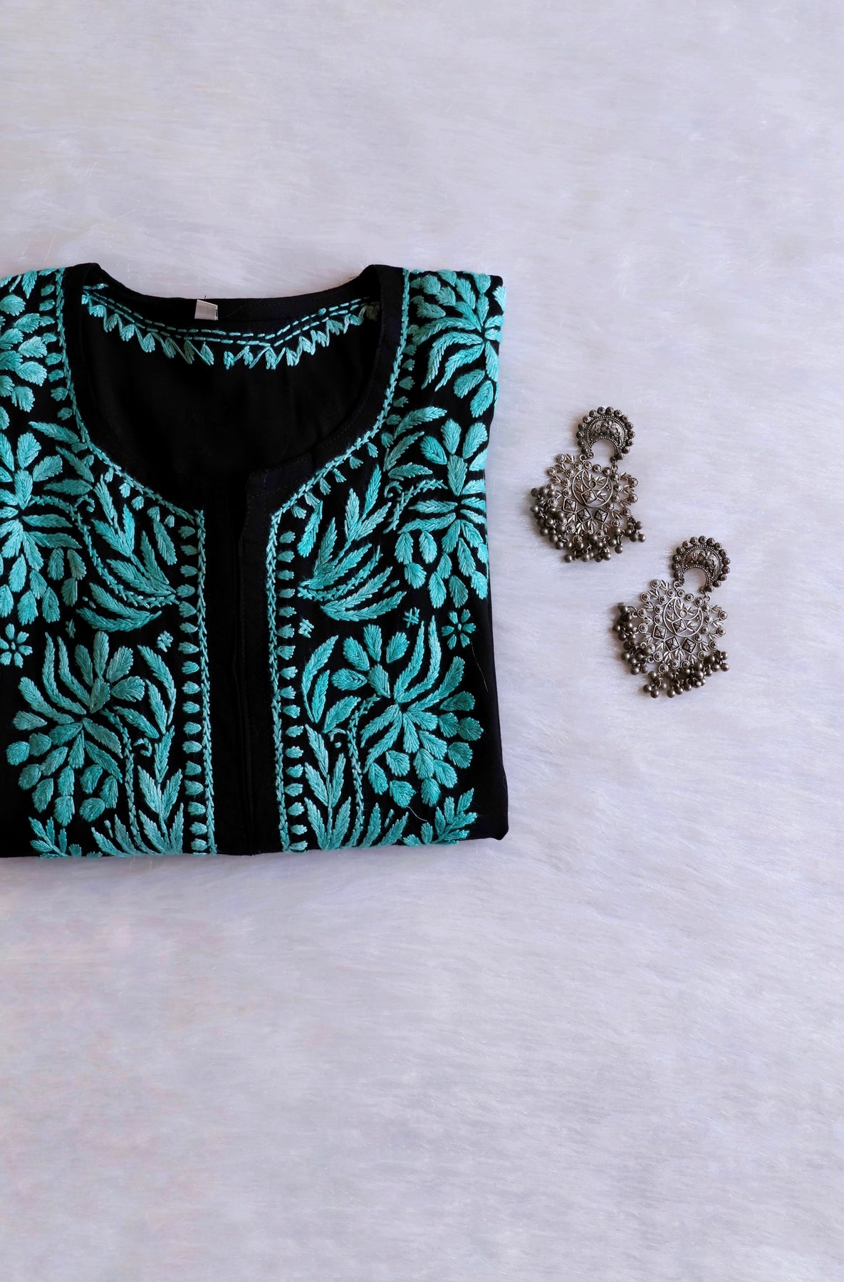 Black Long Rayon kurta with chikankari handwork in Paisley pattern with Intricate details. You need a Soft Rayon kurta in all the seasons. They're the most versatile piece of clothing you can own.