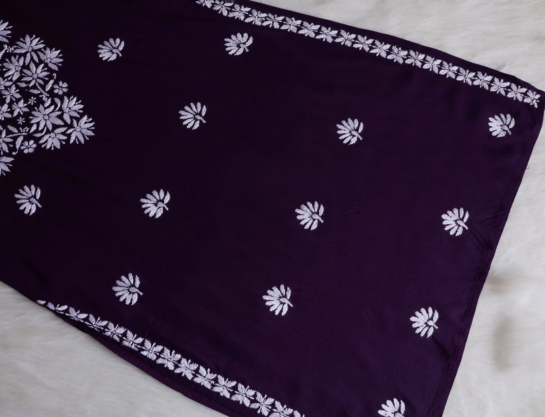Deep Purple Rayon long kurta with chikankari handwork in Paisley and Lily Floral pattern in the front to elevate the look.