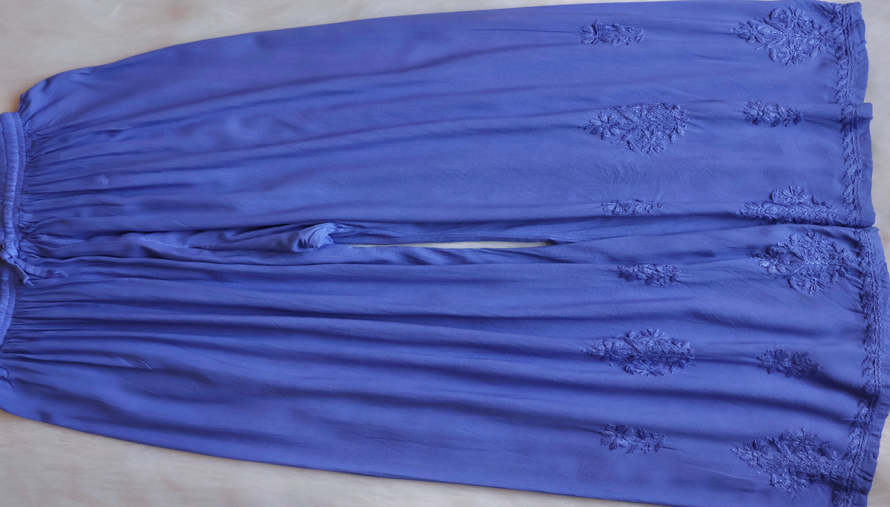 Ice Blue Long rayon kurta with self coloured chikankari in Floral pattern with a matching palazzo to complete the look.