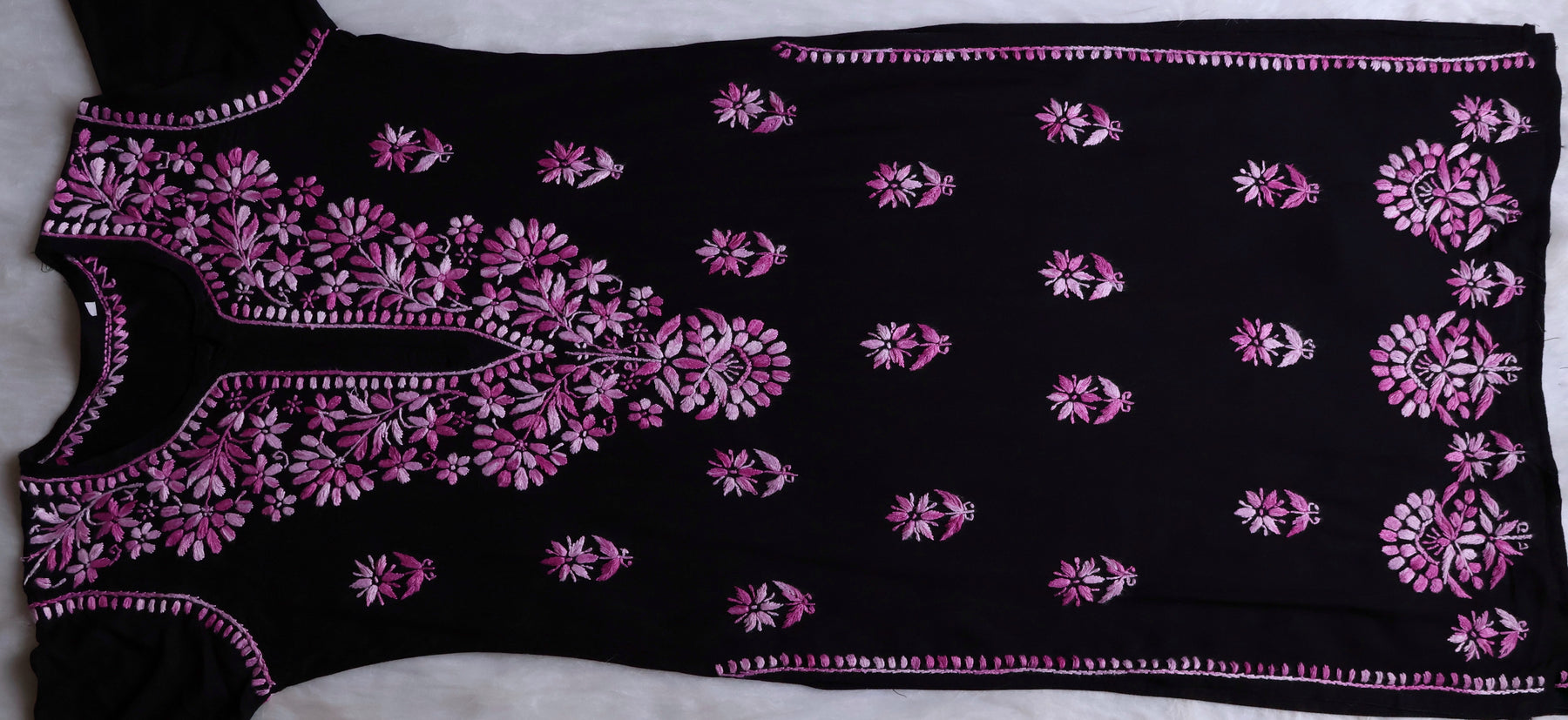 Black Long Rayon kurta with chikankari handwork in Paisley pattern with Intricate details. You need a Soft Rayon kurta in all the seasons. They're the most versatile piece of clothing you can own.