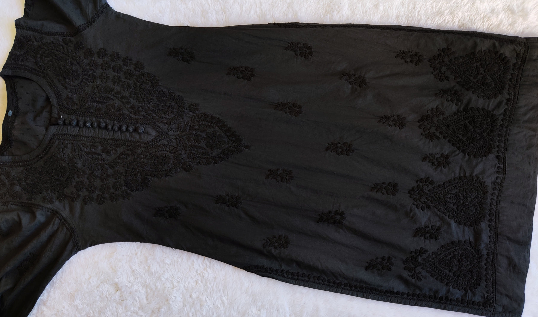 Black cotton kurta with chikankari handwork in Paisley and Floral pattern with beautiful crotia buttons in the front to elevate the look. It's a really Stunning kurta from our Nazakat premium collection with beautiful details! It's perfect and is made for everyone.