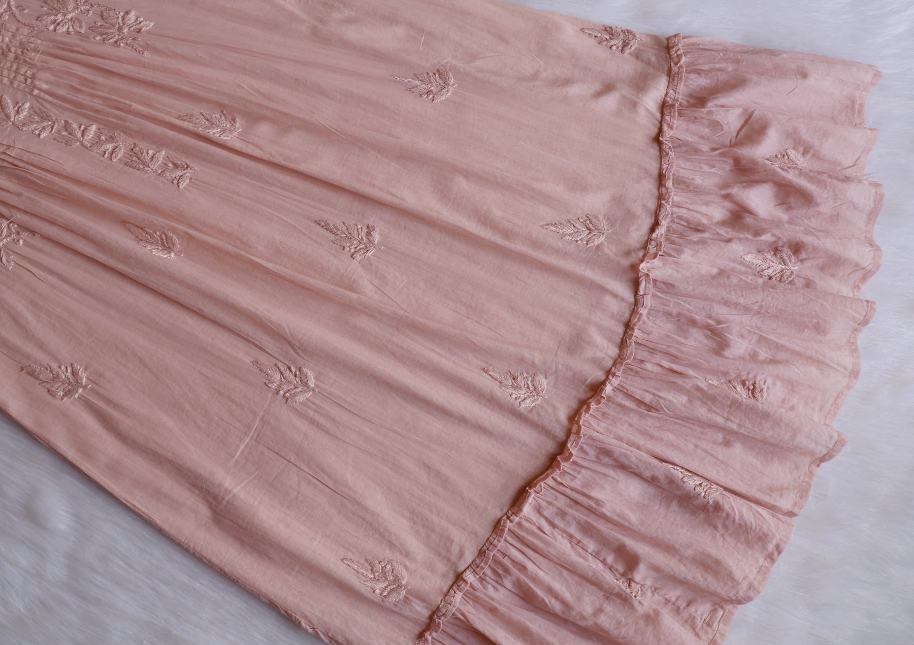 Beige Pure cotton midi dress with chikankari handwork in Paisley and Floral pattern with beautiful floral details to elevate the look.