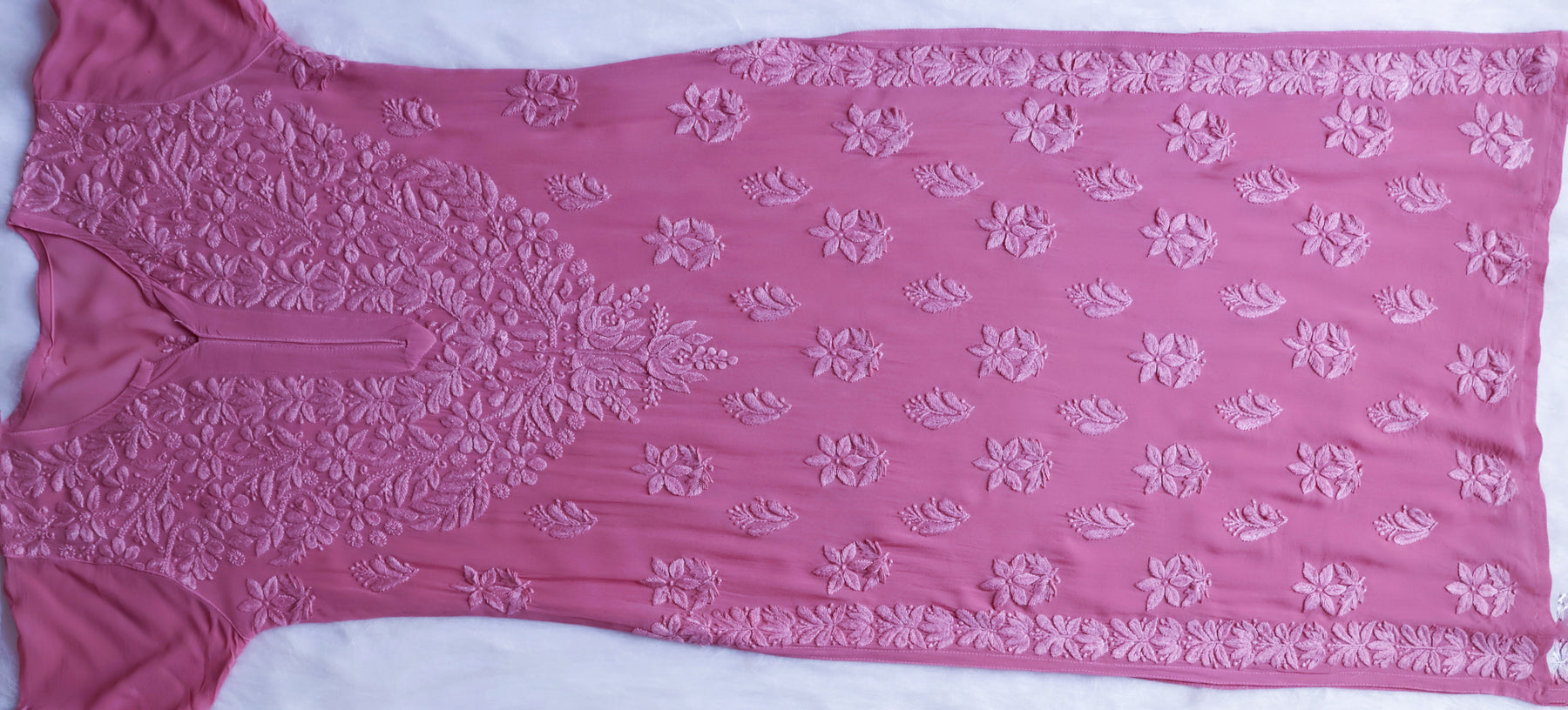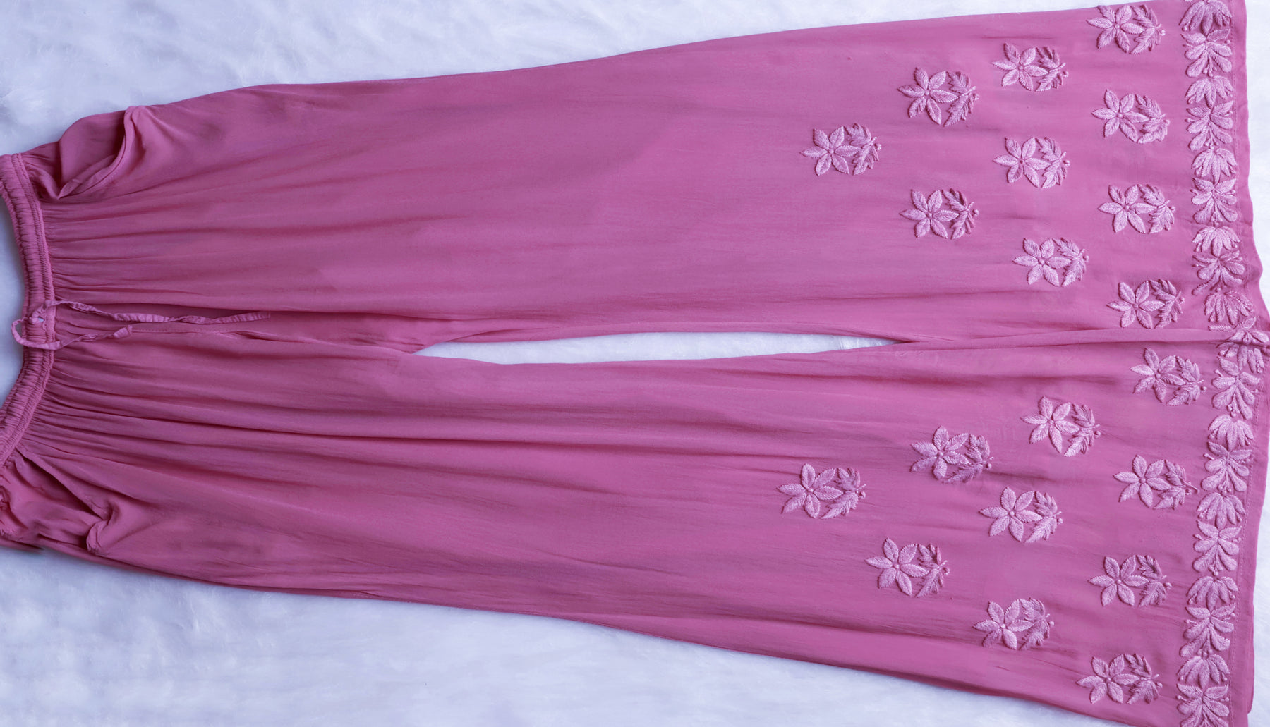 Dusty Purple Long Viscose kurta with self colored chikankari in Floral & Jaal pattern paired with a matching pure chiffon dupatta and matching palazzos with pockets and astar to complete the look.