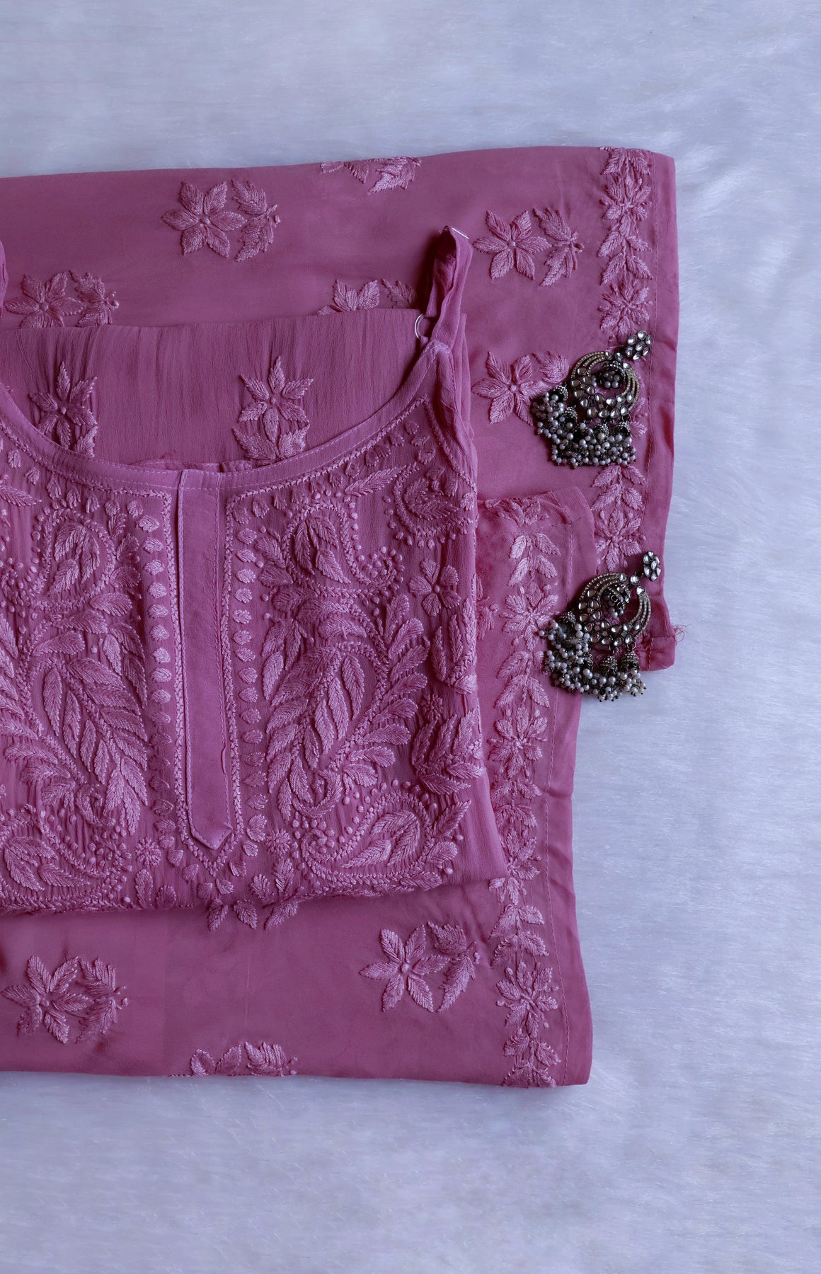 Dusty Purple Long Viscose kurta with self colored chikankari in Floral & Jaal pattern paired with a matching palazzo with pockets and astar to complete the look.