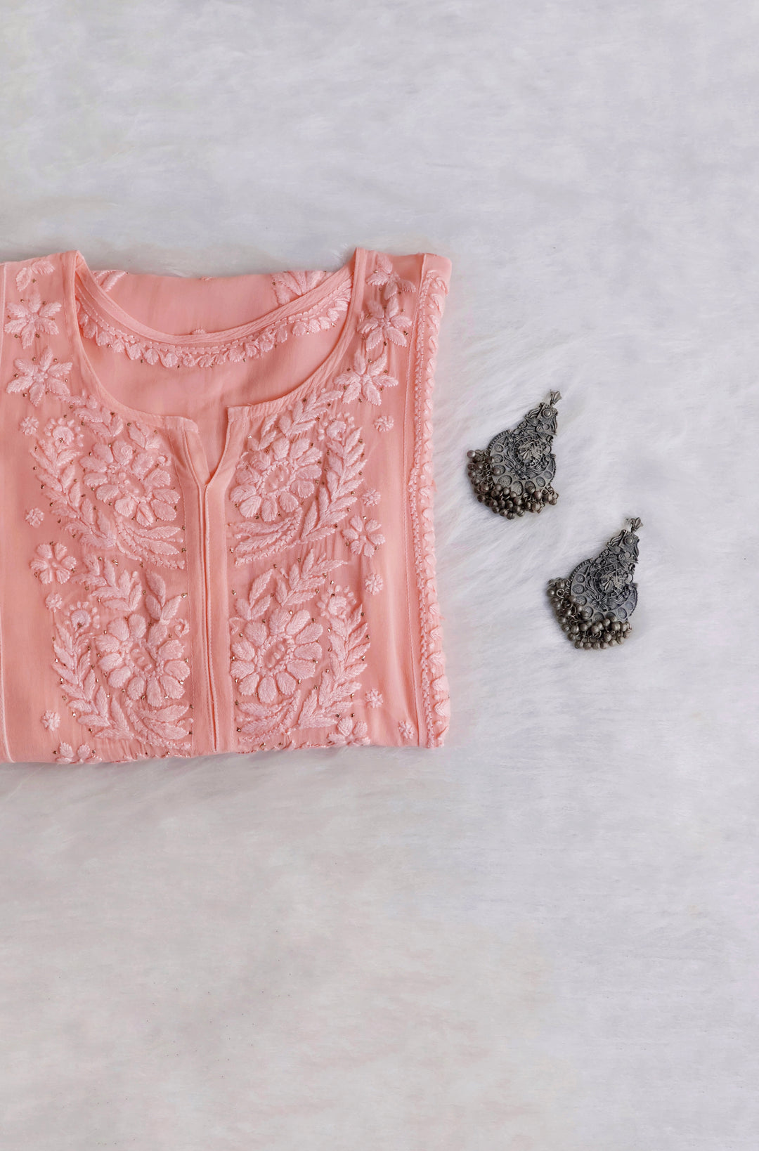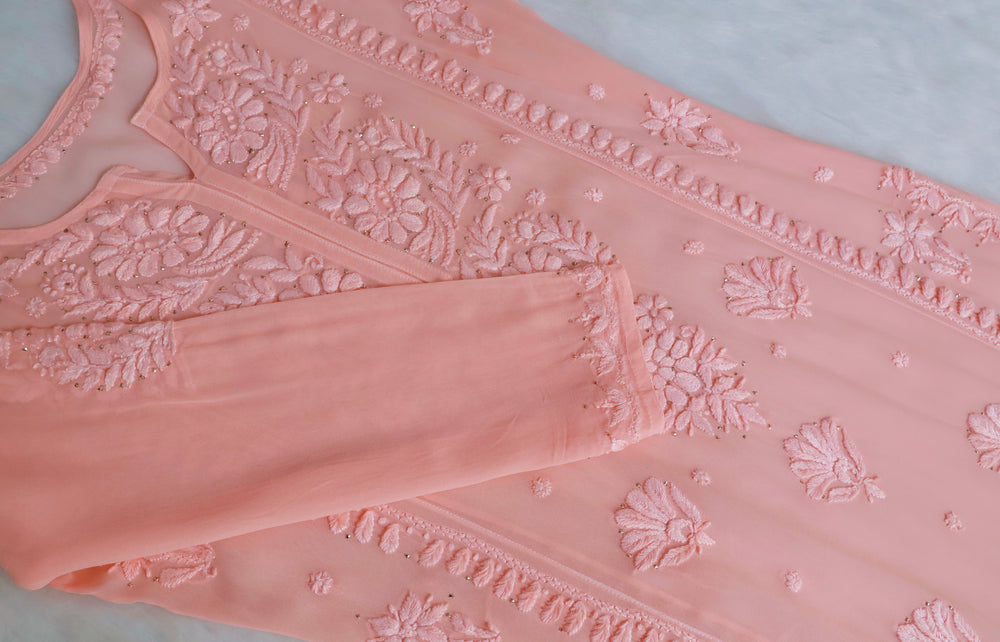 Heer Peach Viscose Georgette Kurta