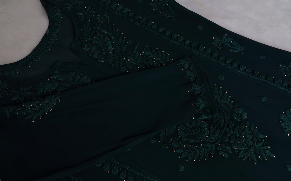 Heer Dark Green Viscose Georgette Kurta