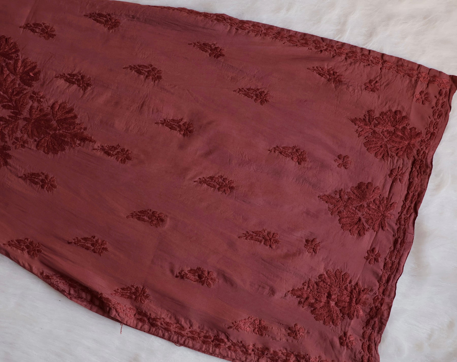 Rose Brown Chanderi kurta with chikankari handwork in Paisley and Floral pattern.. It's a really Serene kurta from our Pastel premium collection with beautiful details! It's perfect and is made for everyone.