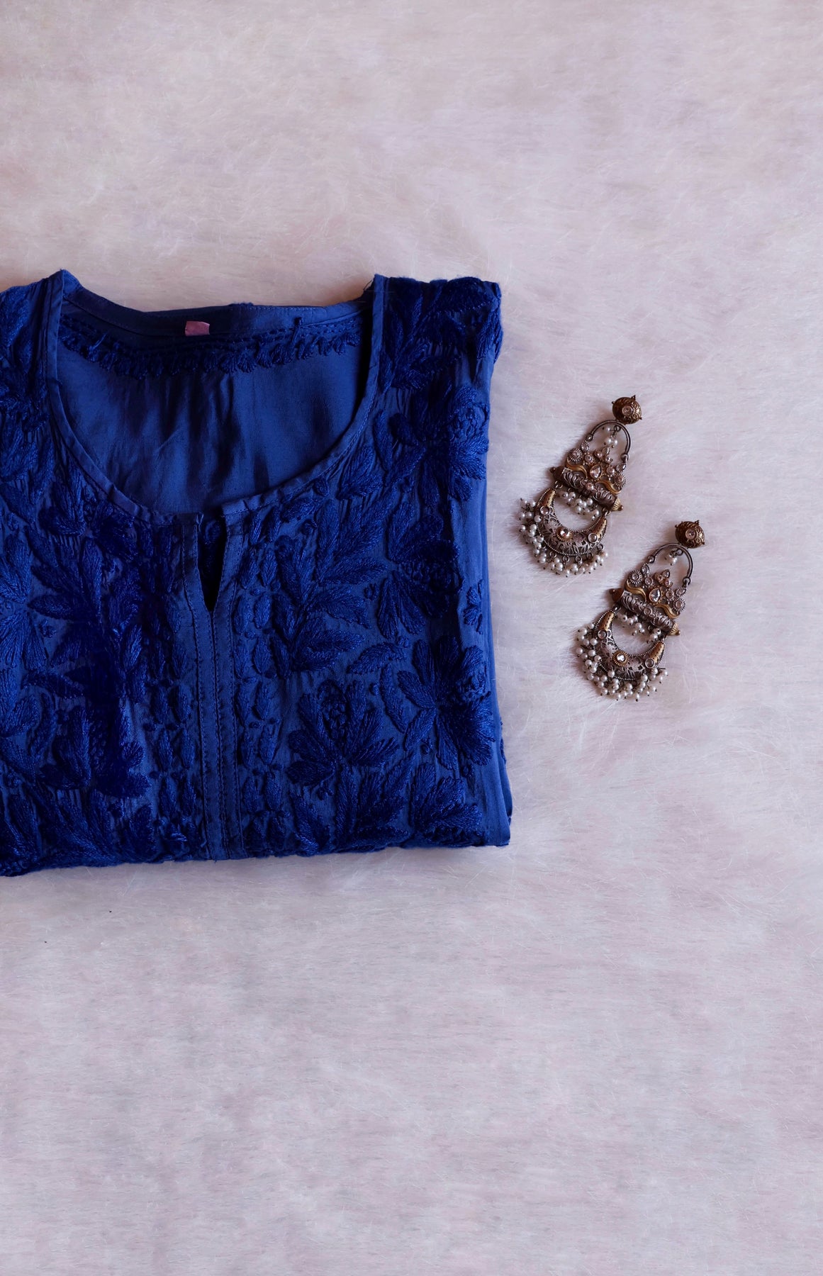 Royal Blue Chanderi kurta with chikankari handwork in Paisley and Floral pattern.. It's a really Serene kurta from our Pastel premium collection with beautiful details! It's perfect and is made for everyone.
