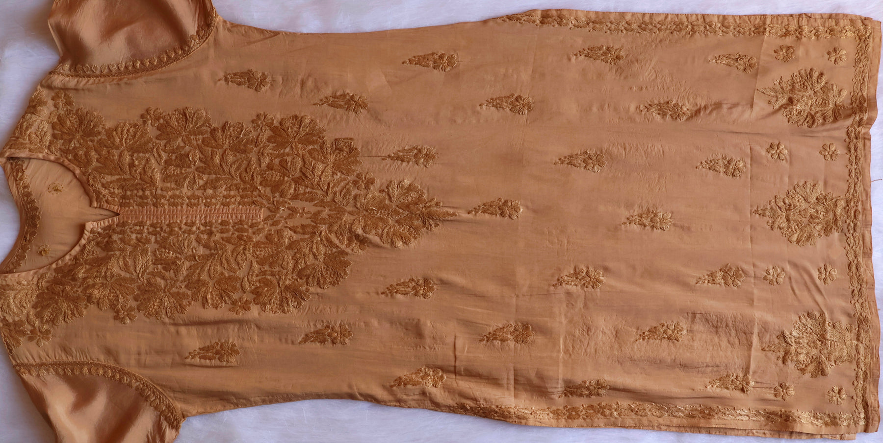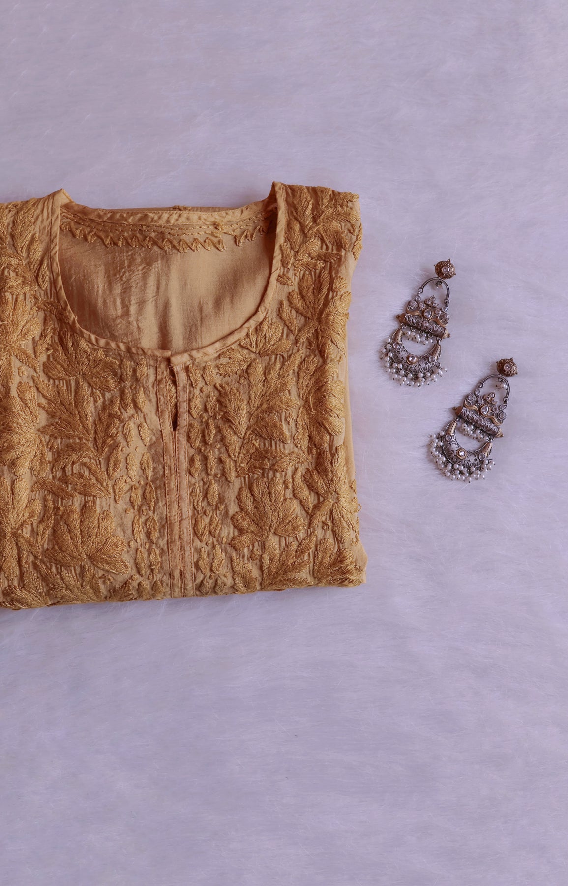 Beige Chanderi kurta with chikankari handwork in Paisley and Floral pattern.. It's a really Serene kurta from our Pastel premium collection with beautiful details! It's perfect and is made for everyone.