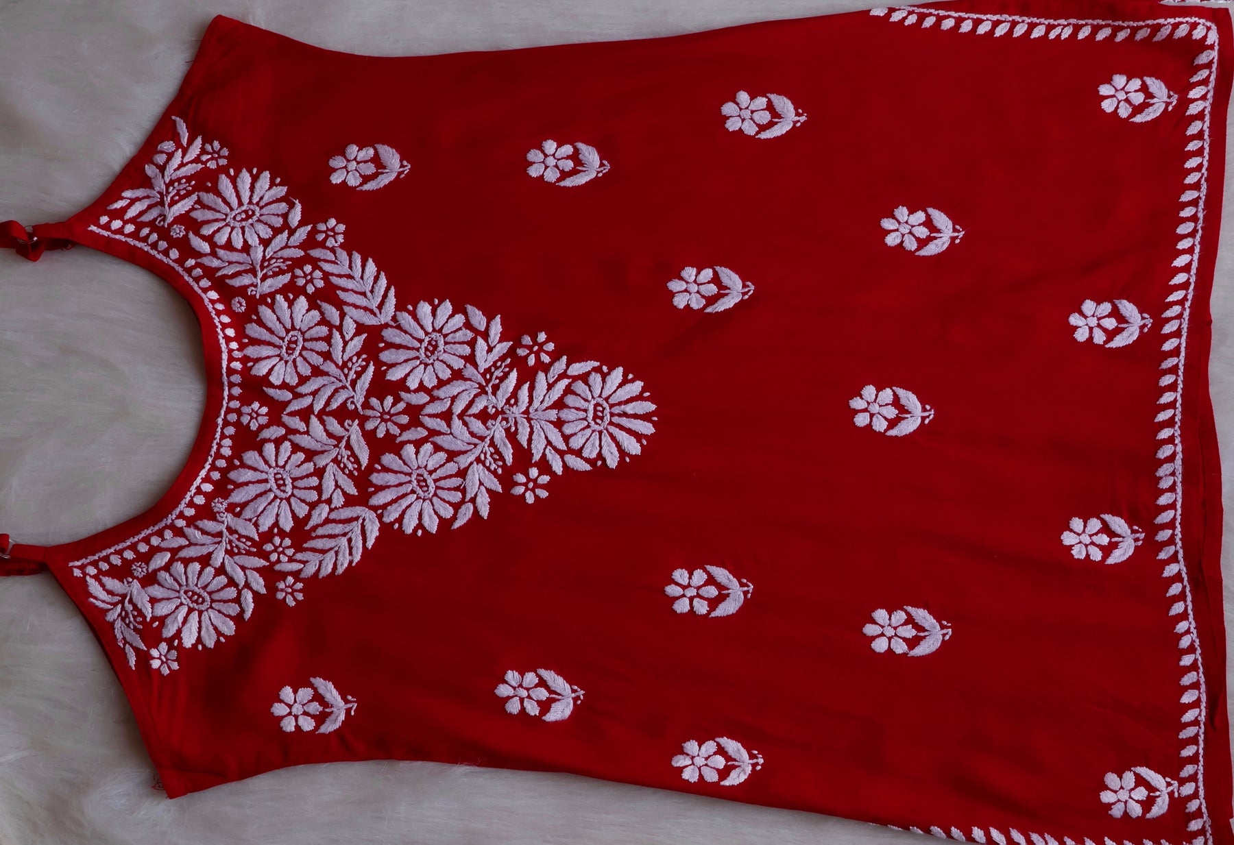 There can be slight variation in embroidery as every single piece is handmade. There may be 10-15% difference in colour as the screen/display settings of every phone differs.